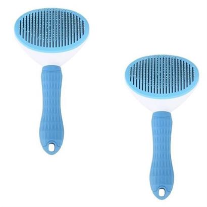 BUFFER® Kedi Köpek Tüy Toplayıcı Kendini Temizleyebilen Ergonomik Saplı Kullanımı Rahat Kaymaz Evcil Hayvan Tarağı Mavi