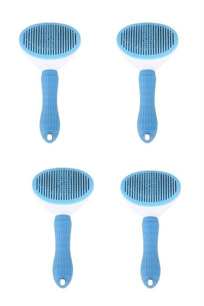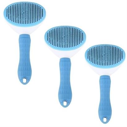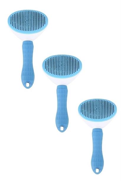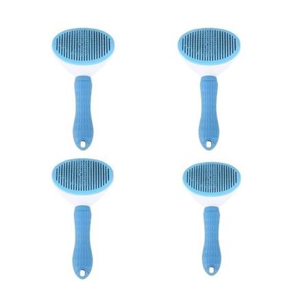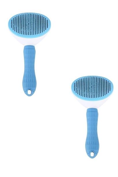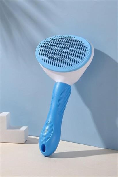 BUFFER® Kedi Köpek Tüy Toplayıcı Kendini Temizleyebilen Ergonomik Saplı Evcil Hayvan Tarağı Mavi