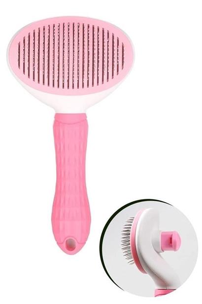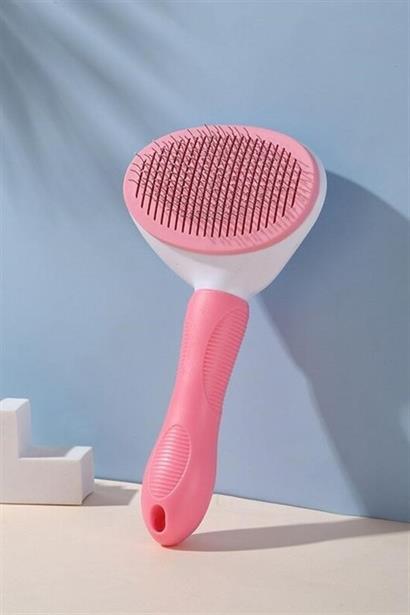 BUFFER® Kedi Köpek Tüy Toplayıcı Kendini Temizleyebilen Ergonomik Saplı Evcil Hayvan Tarağı Pembe