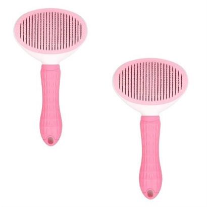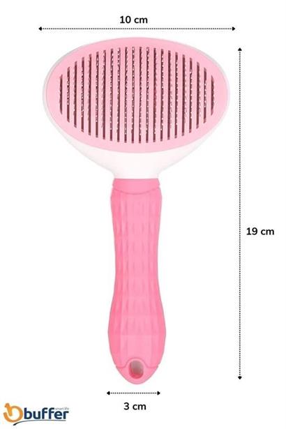 BUFFER® Kedi Köpek Tüy Toplayıcı Kendini Temizleyebilen Ergonomik Saplı Kullanımı Rahat Kaymaz Evcil Hayvan Tarağı Pembe