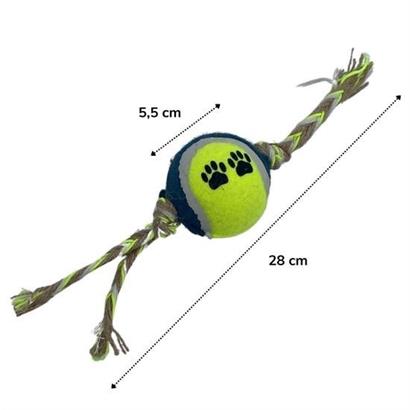 Köpeğinizin tek başına oynaması içinde mükemmel bir oyuncak olan tenis toplu halat çekme, fırlatma ve çekme gibi darbelerde dayanıklıdır Hayvanlar için zararlı madde içermez Tenis toplarının kaplaması keçedir